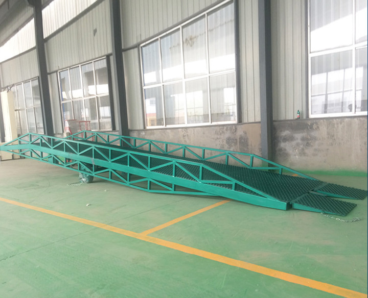 移動式登車橋主要用在裝卸車頻繁、車型不一大型企業、倉庫、車站、碼頭、倉儲物流基地、郵政運(yùn)輸、物流配送(sòng)等。主要作用是貨台與車輛之間搭起的一(yī)座橋。使叉(chā)車便(biàn)利的行駛達到裝卸貨(huò)的目的,該設備一端與(yǔ)貨(huò)台一樣高,另一端搭在貨車車廂後緣上,並能根據不同的車型及裝車過程中車廂的變化(huà),自動調節高度,提高工作效率。